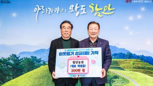 [½Åµ¿¾Æ¹æ¼Û °æ³²ÇÔ¾È=À̽ŵ¿±âÀÚ] ÇԾȱºÀº Áö³­ 22ÀÏ ÇÔ¾È³ó¿ø¿¡¼­ ¿¬¸»À» ¸Â¾Æ ¼º±Ý 300¸¸ ¿øÀ» ±âŹÇß´Ù°í ¹àÇû´Ù. À̹ø ¼º±ÝÀº ¿©Ç׸éÀÇ Ãë¾à°èÃþÀ» Áö¿øÇÏ´Â µ¥ »ç¿ëµÉ ¿¹Á¤À¸·Î, ¿¬¸»À» ¸Â¾Æ Áö¿ª»çȸ¿¡ ¿ÂÁ¤À» ÀüÇϰíÀÚ ¸¶·ÃµÆ´Ù. ¹Ú°üÈì ´ëÇ¥´Â ¡°ÀÛÀº¡¦