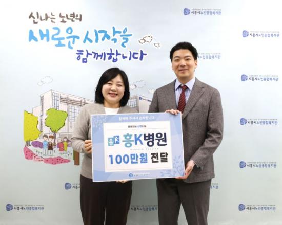 [½Åµ¿¾Æ¹æ¼Û ½ÃÈï½Ã=À̽ŵ¿±âÀÚ] ½ÃÈï½Ã¿¡ ÀÖ´Â ÈïÄÉÀ̺´¿øÀº ¼³ ¸íÀýÀ» ¸Â¾Æ Áö³­ 2¿ù 12ÀÏ ½ÃÈï½Ã³ëÀÎÁ¾ÇÕº¹Áö°ü¿¡ ¾î¸£½ÅµéÀ» À§ÇÑ º¹Áö±â±Ý 100¸¸ ¿øÀ» Àü´ÞÇß´Ù. À̹ø ÈÄ¿øÀº Áö¿ª ¾î¸£½ÅµéÀÇ °Ç°­ÇÏ°í ¾ÈÁ¤ÀûÀÎ ÀÏ»ó Áö¿øÀ» À§ÇÑ ³ª´®ÀÇ Çϳª·Î ¸¶·ÃµÆ´Ù. ÈïÄÉ¡¦