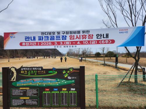 [½Åµ¿¾Æ¹æ¼Û °æ³²ÁøÁÖ=±è¸í¼ö±âÀÚ] ÁøÁֽô º½Ã¶ Àܵðº¸È£ ¹× ½Ã¼³Á¤ºñ¸¦ À§ÇØ °ü³» ÆÄÅ©°ñÇÁÀå¿¡ ´ëÇØ¼­ ÀÓ½ÃÈÞÀåÀ» ½Ç½ÃÇÑ´Ù°í ¹àÇû´Ù. À̹ø ÈÞÀåÀº °ü³» ¼Û¹éÁö±¸ ÆÄÅ©°ñÇÁÀåÀ» Æ÷ÇÔÇÑ ÃÑ 15°³¼Ò¸¦ ´ë»óÀ¸·Î 3¿ù 3ÀϺÎÅÍ 4¿ù 10ÀϱîÁö 6ÁÖ°£ ½Ç½ÃµÇ¸ç, 4¿ù 11ÀϺΡ¦