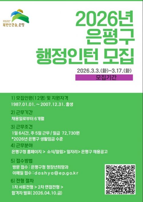 [½Åµ¿¾Æ¹æ¼Û ÀºÆò±¸=À̽ŵ¿±âÀÚ] ¼­¿ï ÀºÆò±¸´Â ¹ÌÃë¾÷ û³âÀ» ´ë»óÀ¸·Î ÇàÁ¤ÀÎÅÏ Âü¿©ÀÚ 12¸íÀ» ¿À´Â 17ÀϱîÁö ¸ðÁýÇÑ´Ù°í ¹àÇû´Ù. ±¸´Â ¹ÌÃë¾÷ û³âµéÀÇ ÇàÁ¤ ½Ç¹« °æÇè ±âȸ¸¦ ³ÐÈ÷±â À§ÇØ ¸ðÁý ÀοøÀ» Áö³­ÇØ 10¸í¿¡¼­ ¿ÃÇØ 12¸íÀ¸·Î È®´ëÇß´Ù. À̹ø ÇàÁ¤ÀÎÅÏ¡¦