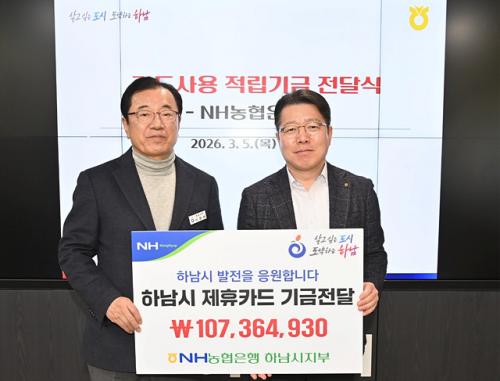 [½Åµ¿¾Æ¹æ¼Û Çϳ²½Ã=À̽ŵ¿±âÀÚ] NH³óÇùÀºÇà Çϳ²½ÃÁöºÎ°¡ 5ÀÏ Á¦ÈÞÄ«µå »ç¿ë Àû¸³±â±Ý 107,364,930¿ø Çϳ²½Ã¿¡ Àü´ÞÇß´Ù°í ¹àÇû´Ù. À̳¯ Àü´ÞµÈ Àû¸³±â±ÝÀº Çϳ²½Ã°¡ 2025³âµµ¿¡ »ç¿ëÇÑ ¹ýÀÎÄ«µå¿Í »çȸ´Üü º¸Á¶±Ý Ä«µå, °ø¹«¿ø º¹ÁöÄ«µå µî »ç¿ë±Ý¾×ÀÇ 0.1~1.0% ¡¦
