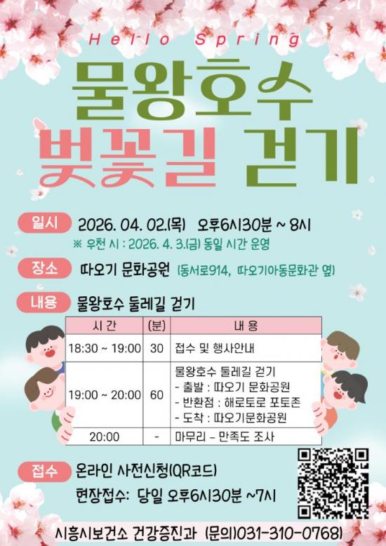 [½Åµ¿¾Æ¹æ¼Û ½ÃÈï½Ã=À̽ŵ¿±âÀÚ] ½ÃÈï½Ãº¸°Ç¼Ò´Â ¿À´Â 4¿ù 2ÀÏ ¹°¿ÕÈ£¼ö ÀÏ´ë¿¡¼­ º¢²É ½ÃÁðÀ» ¸Â¾Æ ½Ã¹ÎµéÀÇ °Ç°­ ÁõÁø°ú ½ÅüȰµ¿ Ȱ¼ºÈ­¸¦ À§ÇØ ¡®¹°¿ÕÈ£¼ö º¢²É±æ °È±â¡¯ Çà»ç¸¦ °³ÃÖÇÑ´Ù. ​À̹ø Çà»ç´Â ¹°¿ÕÈ£¼öÀÇ ¾Æ¸§´Ù¿î dz°æ°ú º¢²É±æÀ» ¹è°æÀ¸·Î ÁøÇࡦ
