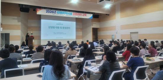 [½Åµ¿¾Æ¹æ¼Û °æ³²ÁøÁÖ=±è¸í¼ö±âÀÚ] ÁøÁֽú¸°Ç¼Ò´Â 14ÀÏ »óÆòº¹ÇÕ¹®È­¼¾ÅÍ 3Ãþ ÄÁº¥¼ÇȦ¿¡¼­ °ü³» ¿ä¾çº´¿ø°ú Á¤½ÅÀÇ·á±â°ü, ³ëÀÎ ÀǷẹÁö½Ã¼³, Á־߰£ º¸È£½Ã¼³ µî °¨¿° Ãë¾à ½Ã¼³ 90°÷ÀÇ °¨¿°°ü¸®ÀÚ 100¿© ¸íÀ» ´ë»óÀ¸·Î ¡®°¨¿°º´ ¿¹¹æ¡¤¿ª·®°­È­ ±³À°¡¯À» ½Ç½ÃÇß´Ù.¡¦